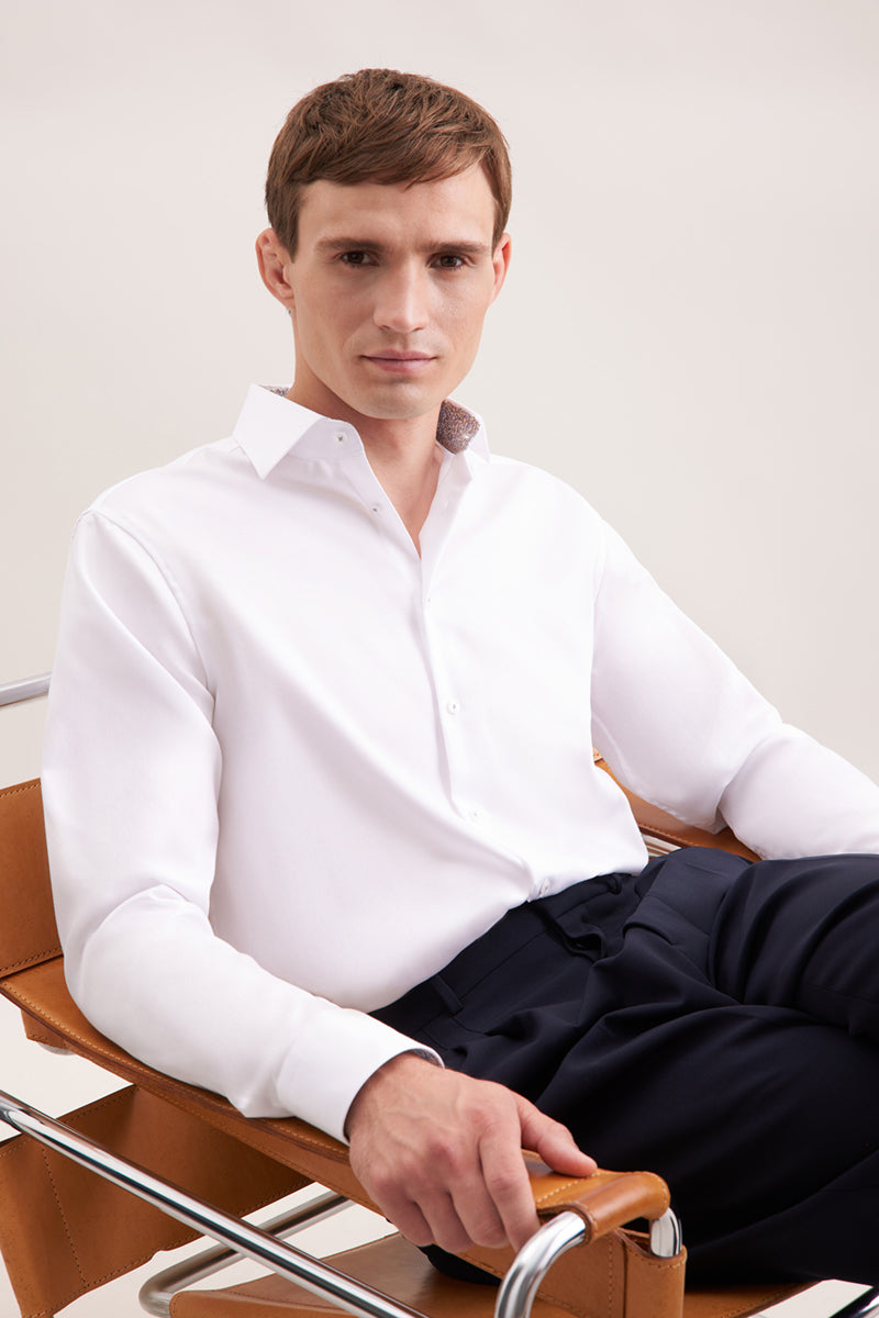 This SLIM shirt is not quite as slim as the X-SLIM, but still very body-hugging. With its discreet waist measurement, it represents the spirit of the time and matches every business outfit perfectly. Special feature: The SLIM shirt is also available with extra-long sleeves, also enabling tall shirt wearer to have the opportunity to put emphasis on their body without missing out on the perfect fit.